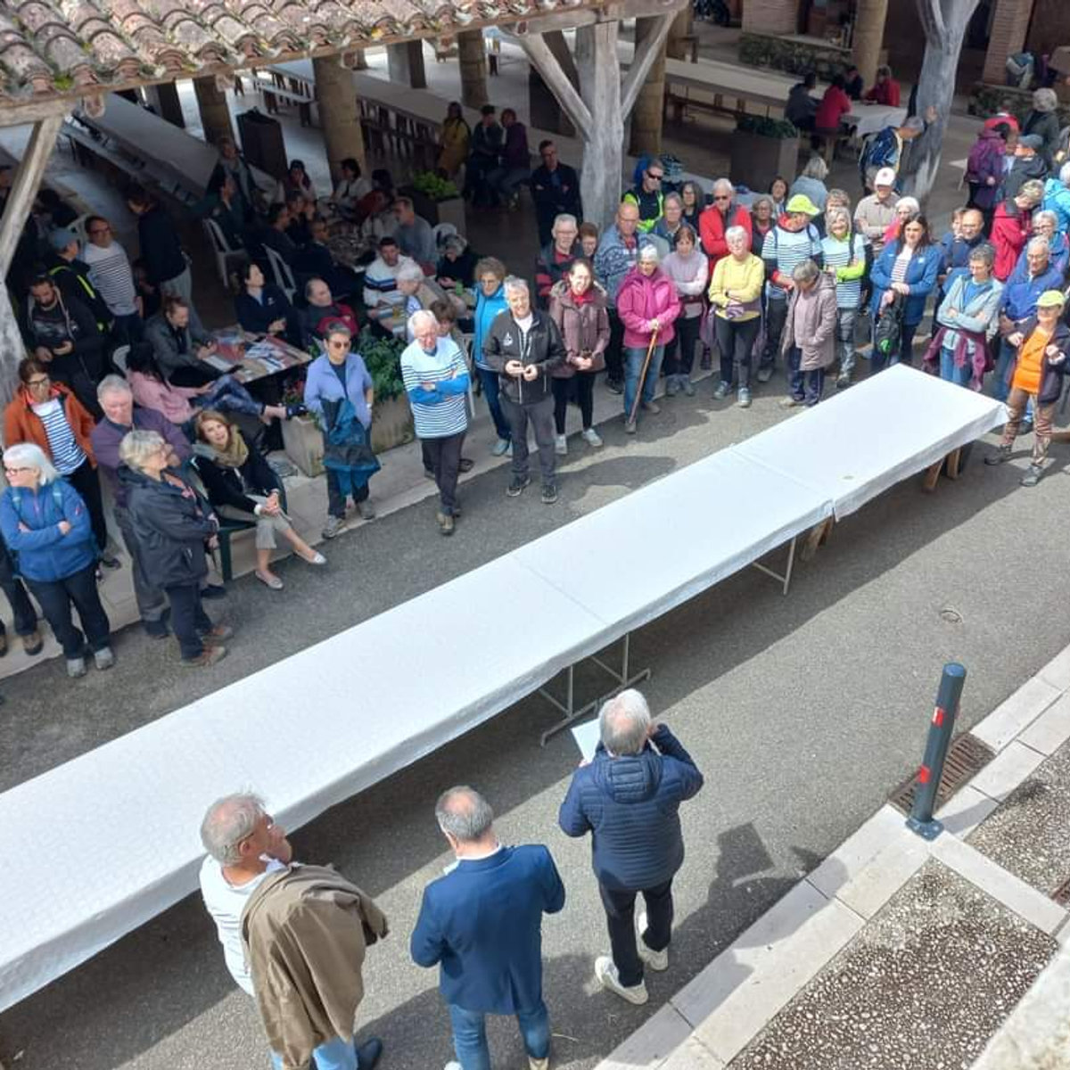 Le 28 avril 2024 a eu lieu l’inauguration des 3 nouveaux chemins de randonnée de Touget, labellisés par FFRandonnée. Pour la circonstance, le club de marche local “Horizons” a organisé un grand rassemblement de randonneurs, et pour ce coup d’essai, a réalisé un véritable coup de maître avec près de 200 marcheurs venus de différentes régions du département, voire au-delà. Les groupes de randonnée répartis sur deux circuits, l’un de 10km et l’autre de 6,5km, ont été guidés par les animateurs du club local, avec le concours des animateurs du club voisin de Cologne. Sur le circuit du maître du temps, s’est déroulée une petite cérémonie pour dévoiler la sculpture d’Agnès Lemoine, rappelant une légende du lieu.