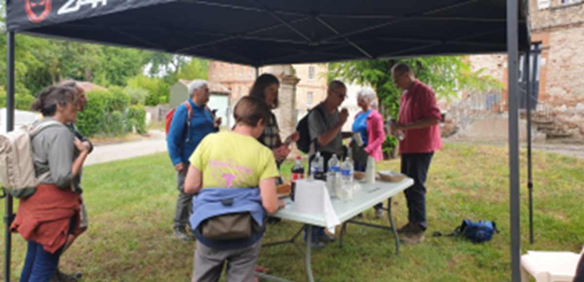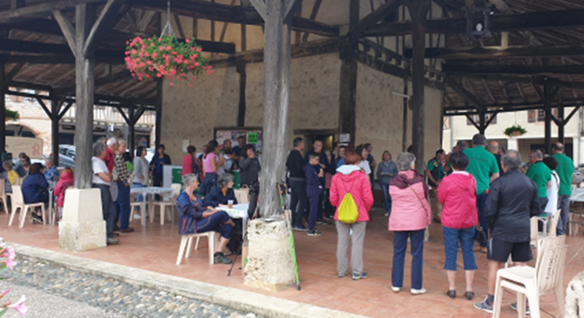 Dès potron-minet le dimanche 26 juin, et comme les jours qui ont précédé, l’équipe du club de Cologne sous la conduite de sa présidente Laura Magné, a préparé l’accueil des randonneurs du Gers qui ont répondu nombreux à l’appel du comité départemental pour cette fête devenue traditionnelle chaque année à la même époque. Ce jour-là, ce sont environ 180 marcheuses et marcheurs venant d’une quinzaine de clubs du Gers qui se sont retrouvés autour de la superbe halle du XIVème siècle, typique des bastides du Gers. Après les inscriptions et le café d’accueil, les randonneurs avaient le choix entre 3 circuits : 60 vaillants ont affronté les 14 km, 103 autres ont parcouru le 9 km et 17 ont préféré se limiter à 6 km. Pour tous les circuits, les organisateurs n’avaient pas oublié le point de ravitaillement, pour une petite pause bienvenue avant de terminer la boucle.